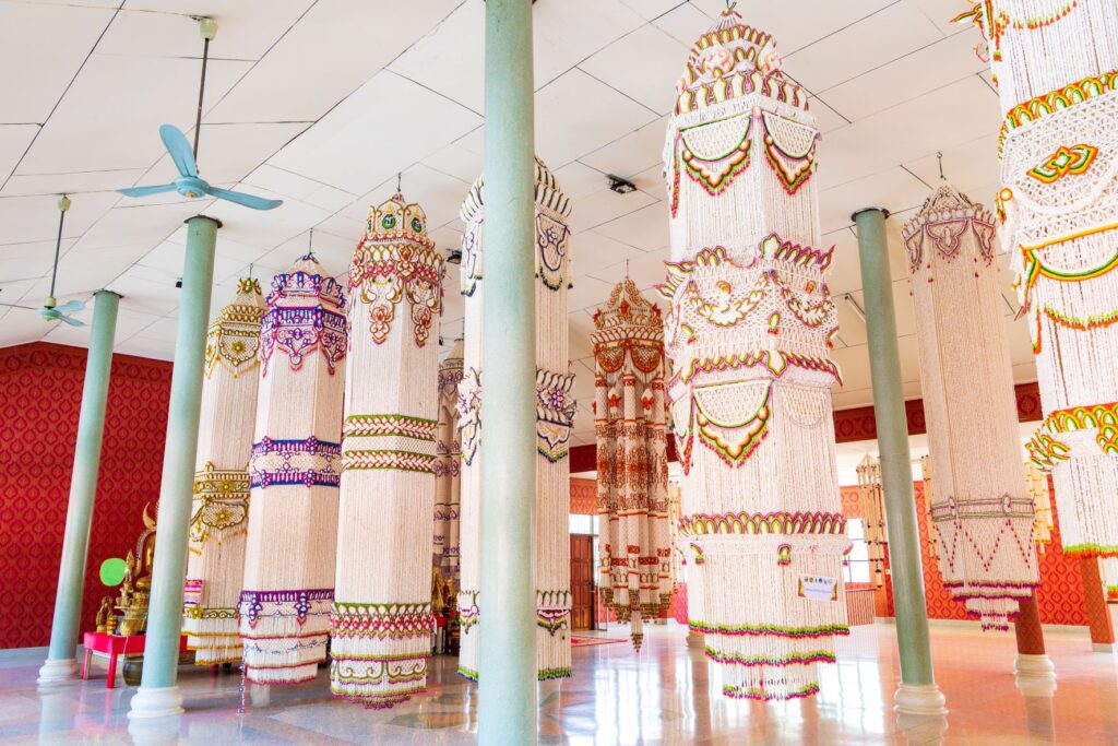 พิพิธภัณฑ์มาลัยข้าวตอก ตั้งอยู่ในศาลาวัดหอก่อง ตำบลฟ้าหยาด เป็นสถานที่เก็บมาลัยข้าวตอก ซึ่งเกิดจากภูมิปัญญาของชาวบ้านที่ได้เห็นถึงความสำคัญของข้าว จึงได้นำเมล็ดข้าวเปลือกมาคั่ว เรียกว่า ข้าวตอก แล้วนำมาร้อยเรียงประดิษฐ์ตกแต่งเป็นมาลัยที่สวยงาม ในช่วงวันมาฆบูชาของทุกปีจะมีประเพณีแห่มาลัยข้าวตอก จัดขึ้น ณ สนามหน้าที่ว่าการอำเภอมหาชนะชัย โดยชาวบ้านจะนำมาลัยข้าวตอกมาจัดเป็นขบวนแห่ และจะไปสิ้นสุด ณ วัดหอก่อง เพื่อนำมาลัยไปถวายพระภิกษุเป็นพุทธบูชา จากนั้นมาลัยข้าวตอกจะถูกนำไปจัดแสดงที่พิพิธภัณฑ์ภายในวัดหอก่องต่อไป นอกจากนี้ยังมีการแสดงแสงสีเสียงสื่อผสม การประกวดธิดามาลัย และศิลปวัฒนธรรมพื้นบ้านอีกด้วย ความเป็นมาของมาลัยข้าวตอก เกิดจากความเชื่อในพระไตรปิฎกส่วนที่ว่าด้วยพระสุตตันตปิฎก บทปรินิพพานสูตร กล่าวคือ ดอกมณฑารพ ซึ่งเป็นดอกไม้บนสวรรค์ชั้นดาวดึงส์ มีความสวยงามและมีกลิ่นหอมเป็นพิเศษ ซึ่งดอกมณฑารพจะบานและร่วงหล่นลงมายังโลกมนุษย์แต่ละครั้งก็ด้วยเพราะมีเหตุการณ์สำคัญเกิดขึ้น เช่น พระพุทธเจ้าทรงประสูติ ตรัสรู้ ปรินิพพาน จาตุรงคสันนิบาต และทรงแสดงธัมมจักกัปปวัตตนสูตร ครั้งเมื่อพระพุทธเจ้าทรงเสด็จดับขันปรินิพพาน ดอกมณฑารพนี้ก็ได้ร่วงหล่นลงมาทั้งก้านและกิ่ง เปรียบเสมือนความเสียอกเสียใจต่อการเสด็จดับขันธ์ปรินิพพานของพระพุทธเจ้า เหล่าพระภิกษุผู้ได้ชื่อว่าอรหันต์และประชาชนทั้งหลายได้พากันมาถวายสักการะพระบรมศพของสมเด็จพระสัมมาสัมพุทธเจ้า โดยนำข้าวตอกมาสักการะ เพราะถือว่าข้าวเป็นสิ่งที่มีคุณค่าและเป็นของสูงที่มนุษย์จะขาดไม่ได้ ต่อมาจึงมีการนำมาประดิษฐ์ตกแต่งเป็นมาลัยที่สวยงาม เป็นที่มาของ “มาลัยข้าวตอก”