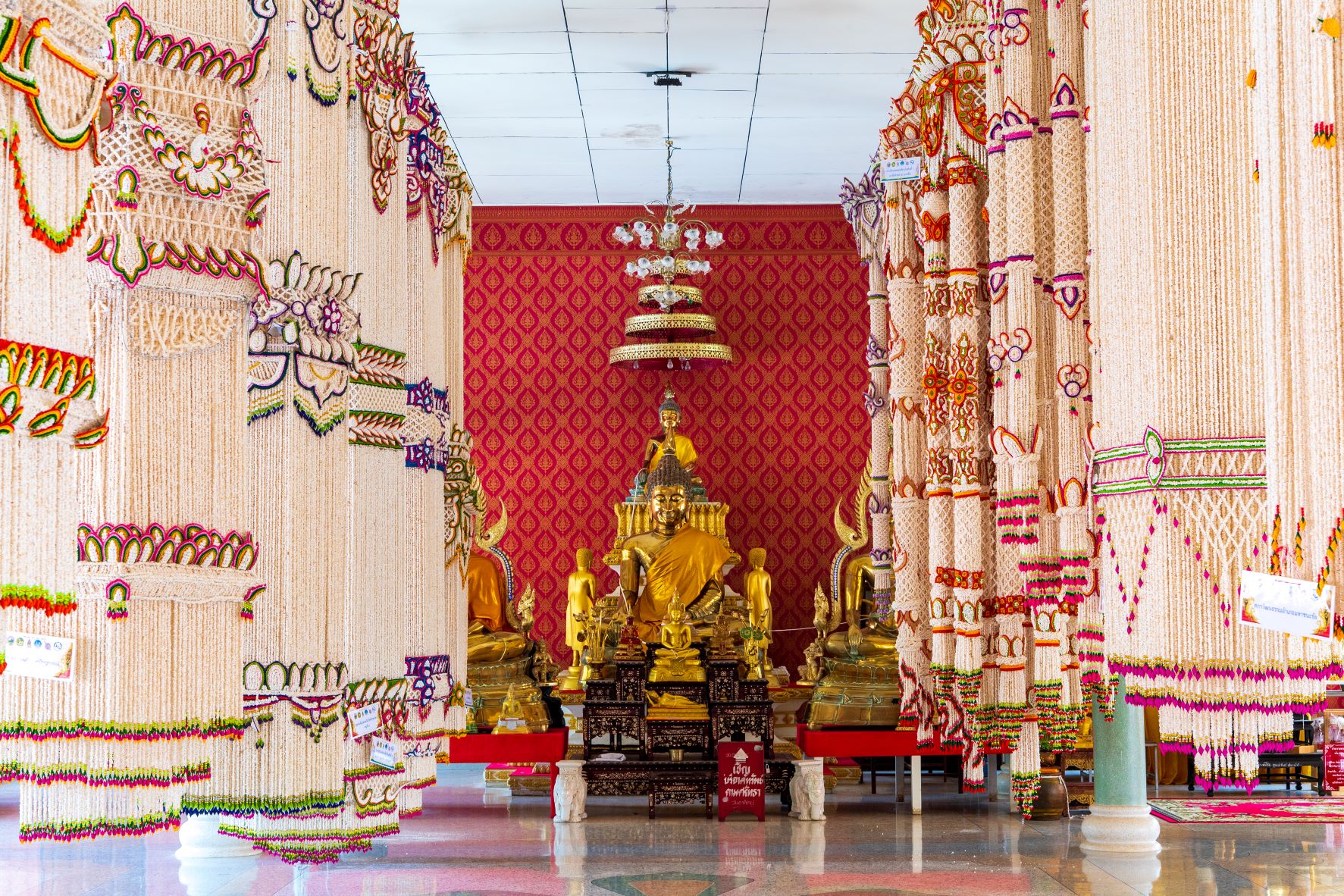 พิพิธภัณฑ์มาลัยข้าวตอก ตั้งอยู่ในศาลาวัดหอก่อง ตำบลฟ้าหยาด เป็นสถานที่เก็บมาลัยข้าวตอก ซึ่งเกิดจากภูมิปัญญาของชาวบ้านที่ได้เห็นถึงความสำคัญของข้าว จึงได้นำเมล็ดข้าวเปลือกมาคั่ว เรียกว่า ข้าวตอก แล้วนำมาร้อยเรียงประดิษฐ์ตกแต่งเป็นมาลัยที่สวยงาม ในช่วงวันมาฆบูชาของทุกปีจะมีประเพณีแห่มาลัยข้าวตอก จัดขึ้น ณ สนามหน้าที่ว่าการอำเภอมหาชนะชัย โดยชาวบ้านจะนำมาลัยข้าวตอกมาจัดเป็นขบวนแห่ และจะไปสิ้นสุด ณ วัดหอก่อง เพื่อนำมาลัยไปถวายพระภิกษุเป็นพุทธบูชา จากนั้นมาลัยข้าวตอกจะถูกนำไปจัดแสดงที่พิพิธภัณฑ์ภายในวัดหอก่องต่อไป นอกจากนี้ยังมีการแสดงแสงสีเสียงสื่อผสม การประกวดธิดามาลัย และศิลปวัฒนธรรมพื้นบ้านอีกด้วย ความเป็นมาของมาลัยข้าวตอก เกิดจากความเชื่อในพระไตรปิฎกส่วนที่ว่าด้วยพระสุตตันตปิฎก บทปรินิพพานสูตร กล่าวคือ ดอกมณฑารพ ซึ่งเป็นดอกไม้บนสวรรค์ชั้นดาวดึงส์ มีความสวยงามและมีกลิ่นหอมเป็นพิเศษ ซึ่งดอกมณฑารพจะบานและร่วงหล่นลงมายังโลกมนุษย์แต่ละครั้งก็ด้วยเพราะมีเหตุการณ์สำคัญเกิดขึ้น เช่น พระพุทธเจ้าทรงประสูติ ตรัสรู้ ปรินิพพาน จาตุรงคสันนิบาต และทรงแสดงธัมมจักกัปปวัตตนสูตร ครั้งเมื่อพระพุทธเจ้าทรงเสด็จดับขันปรินิพพาน ดอกมณฑารพนี้ก็ได้ร่วงหล่นลงมาทั้งก้านและกิ่ง เปรียบเสมือนความเสียอกเสียใจต่อการเสด็จดับขันธ์ปรินิพพานของพระพุทธเจ้า เหล่าพระภิกษุผู้ได้ชื่อว่าอรหันต์และประชาชนทั้งหลายได้พากันมาถวายสักการะพระบรมศพของสมเด็จพระสัมมาสัมพุทธเจ้า โดยนำข้าวตอกมาสักการะ เพราะถือว่าข้าวเป็นสิ่งที่มีคุณค่าและเป็นของสูงที่มนุษย์จะขาดไม่ได้ ต่อมาจึงมีการนำมาประดิษฐ์ตกแต่งเป็นมาลัยที่สวยงาม เป็นที่มาของ “มาลัยข้าวตอก”